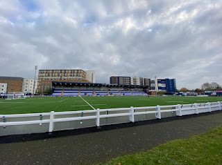 With a Megabus coach ticket to Coventry booked for today, I had the choice of Midland League Premier Division fixtures at Coventry United or Coventry Sphinx, both attractive in their own ways. In the end, as seems to have been the norm in recent weeks, the weather made the decision for me, with prolonged heavy rain causing the Coventry Sphinx game to be called off early on, and although Butts Park Arena was notoriously prone to waterlogging, which caused a previous attempt to visit to be abandoned on the day, a 3G pitch installed earlier this year ensured there would be no issues with this game going ahead today.